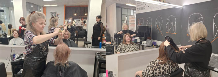 Перед вами слушатели, которые обучились на парикмахера в рамках государственного контракта с Екатеринбургским центром занятости. Сейчас они проходит стажировку и трудоустраиваются в качестве парикмахеров-универсалов. Благодарим преподавателей и базу практики за труд и качественное обучение!