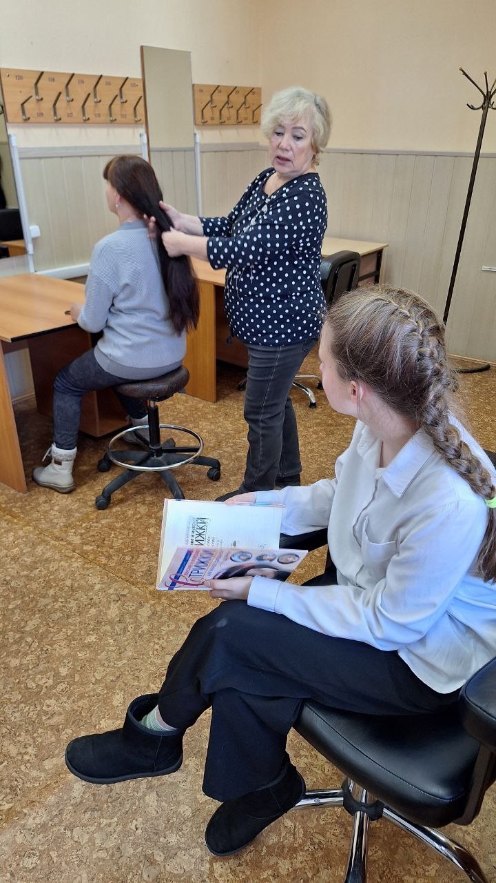 В рамках занятия прошли пробы по профессиям оператор станков с программным управлением, парикмахер и монтажник-высотник. Для этого класс был поделен на 3 группы, и каждый школьник смог принять участие в двух практических занятиях.