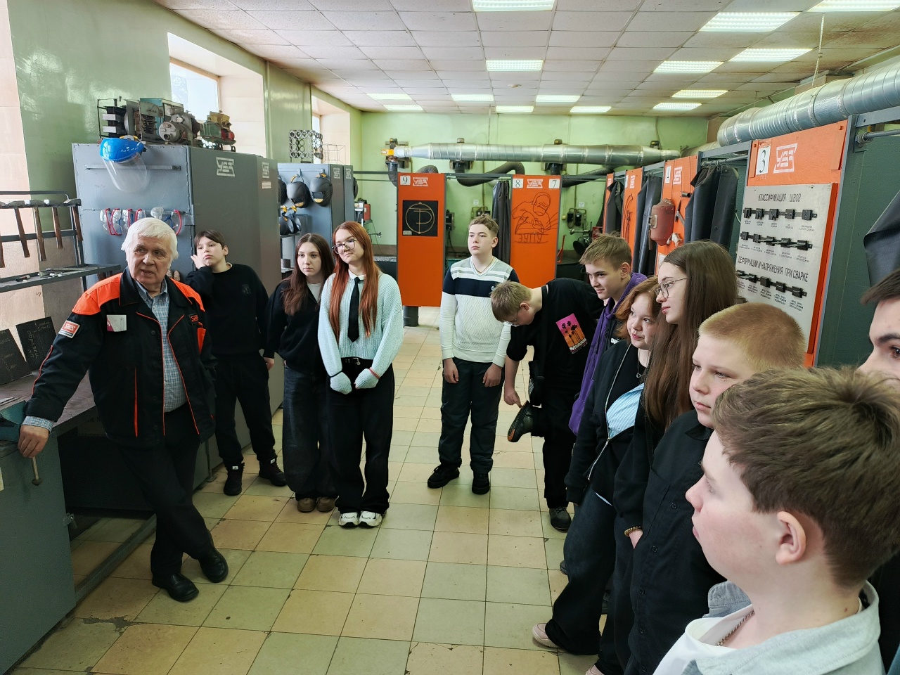 На этой неделе учащиеся 7 класса Школа №100 Нижний Тагил посетили учебно-производственный цех АО «Научно-производственная корпорация «Уралвагонзавод», экскурсию по которому провел начальник цеха Центра подготовки персонала предприятия Владимир Васильевич Владимиров.