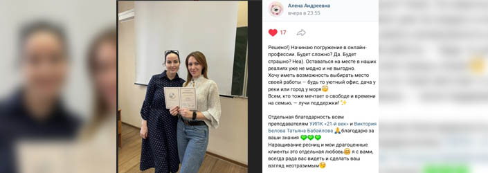 Мы получаем положительные отзывы о программе и преподавателях, благодарим за обратную связь Алену Андреевну!